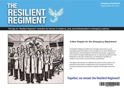 The inaugural volume of The Resilient Regiment, the Emergency Department’s digest at Aga Khan University Hospital, highlights team achievements, departmental milestones, educational initiatives, and the EMERGE conference, alongside creative and academic contributions.