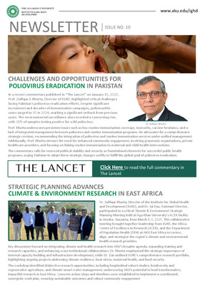 The Institute for Global Health and Development is an interdisciplinary, research intensive initiative of the Aga Khan University to tackle major global health and development challenges, including the accomplishment of Sustainable Development Goals and the Paris Agreement on Climate Change. Through the partnerships with sister agencies in the Aga Khan Development Network (AKDN) and beyond, the Institute advances AKU’s health sciences leadership in LMICs of Asia and Africa to develop cross-sectoral solutions and coordinated programs to overcome the growing health and health-related challenges.